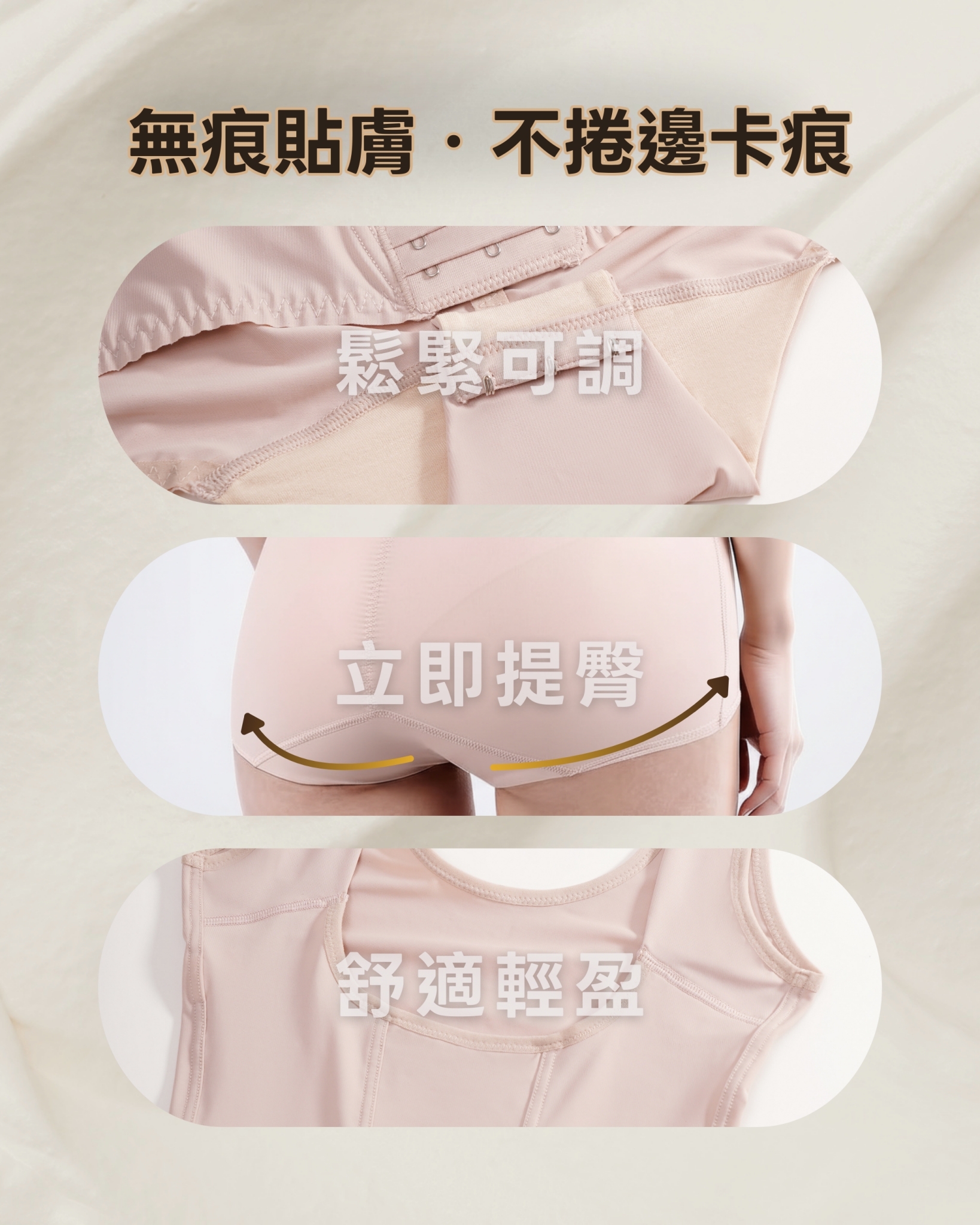 •胸托式塑身衣,能有效側推副乳,胸型更挺拔,聚攏托胸