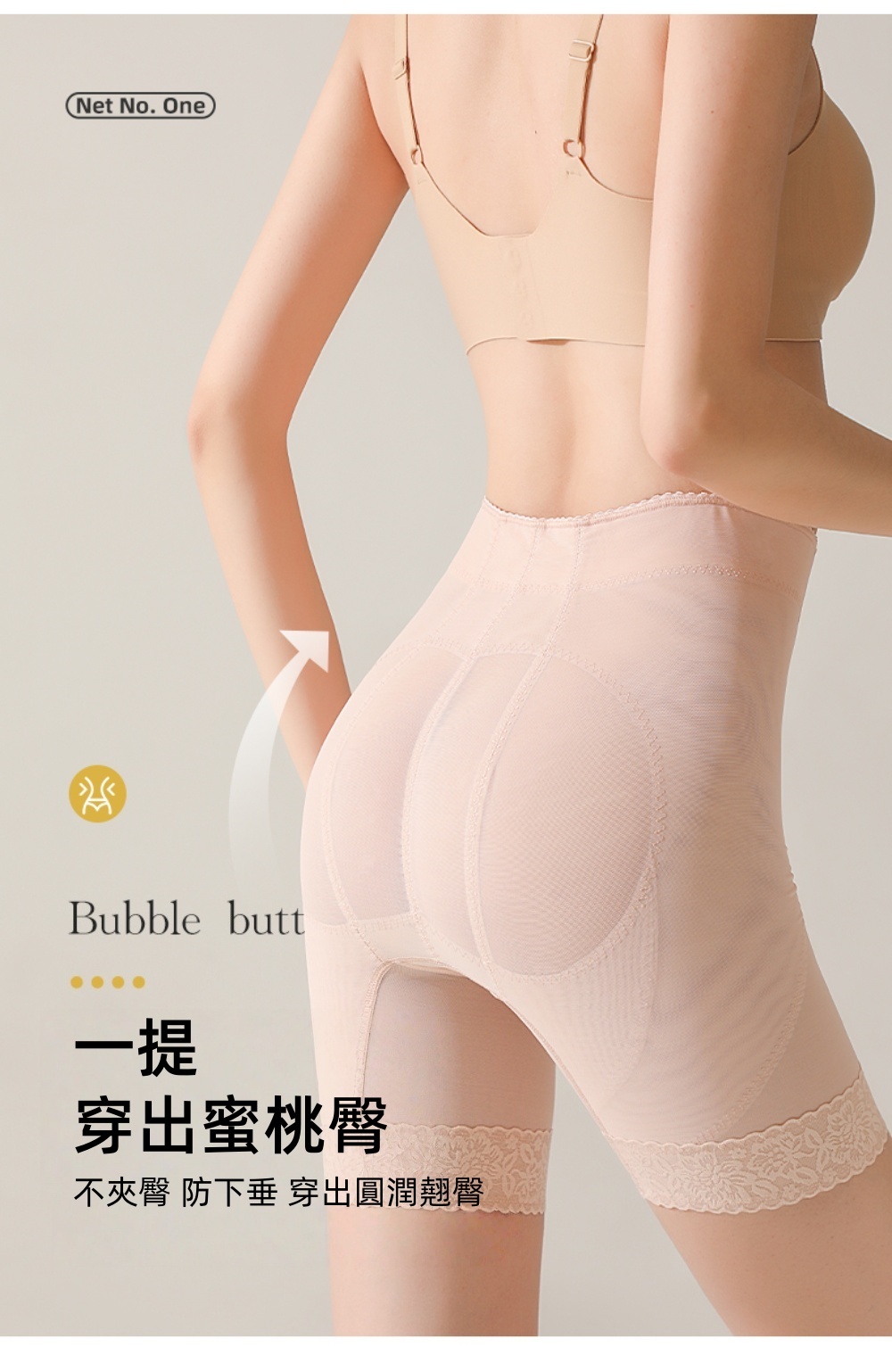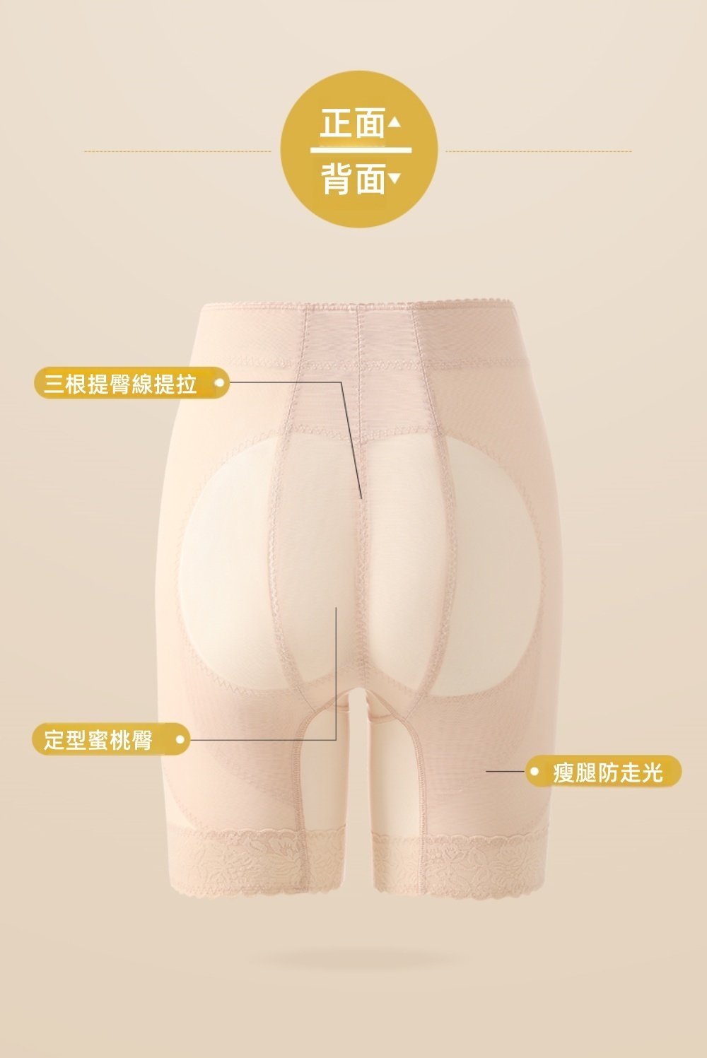 •整件力學結構技術,腰腹臀腿分區分壓,臀部三條提臀拼接線,收腹翹臀,創造蜜桃臀與小蠻腰