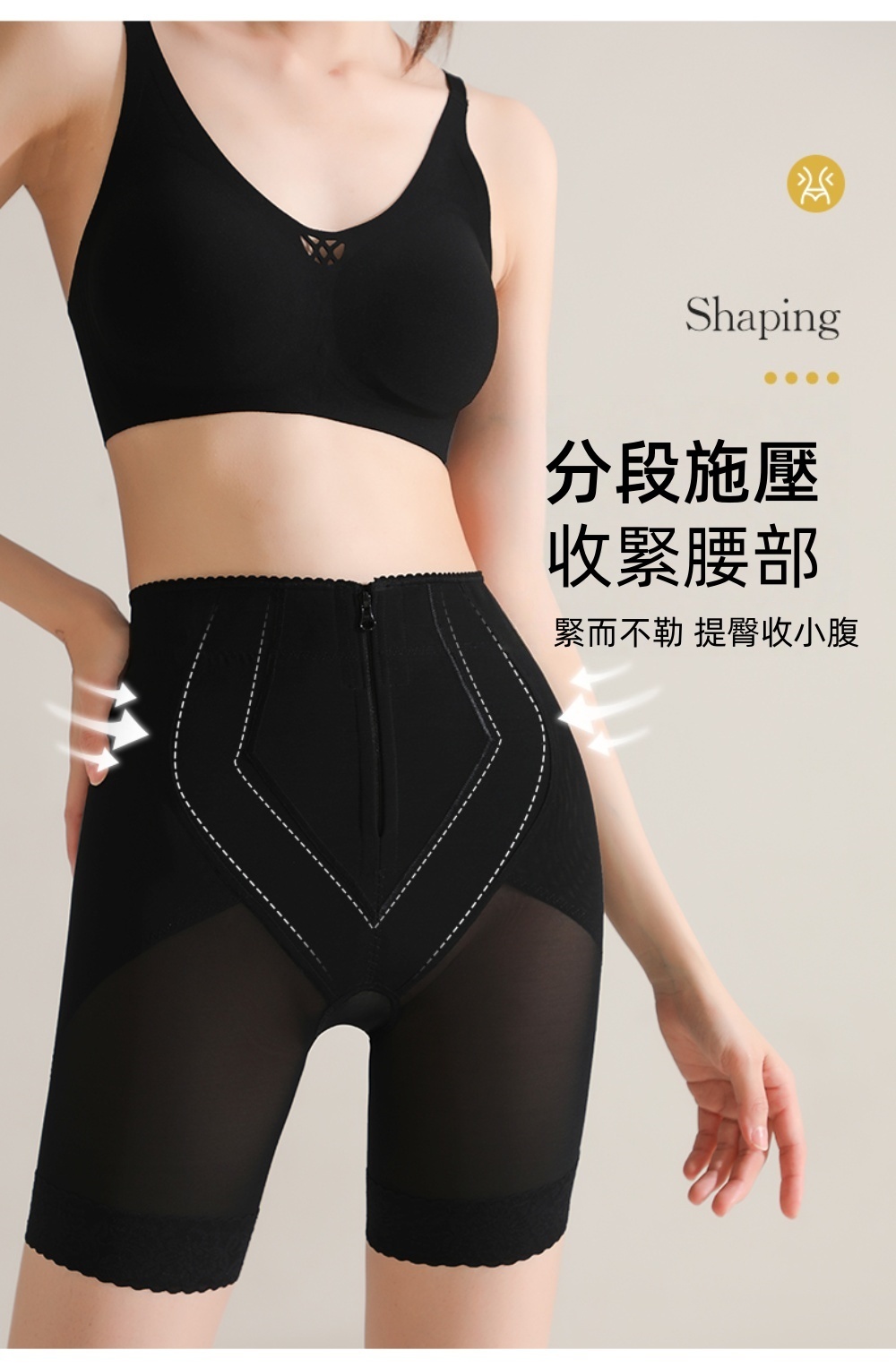 •側腰軟膠骨設計,輔助收腰鎖脂