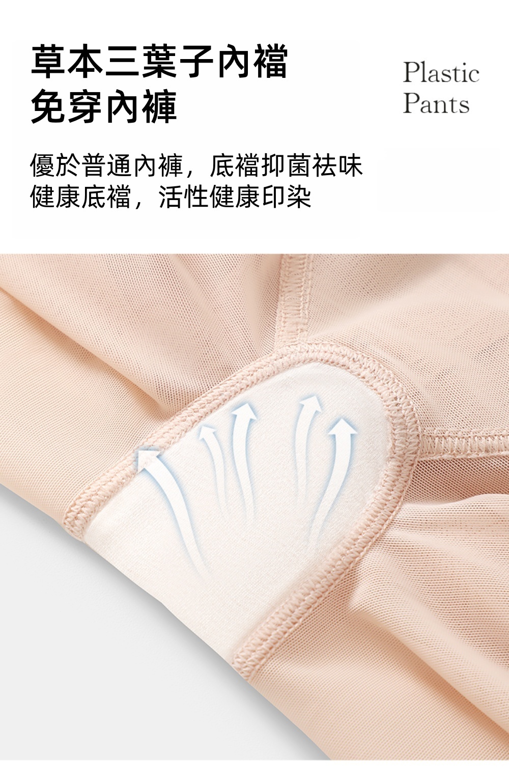 •褲底裡層使用草本三葉子植物纖維布料,除臭抑菌