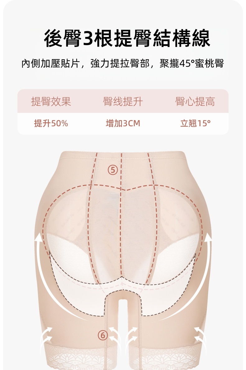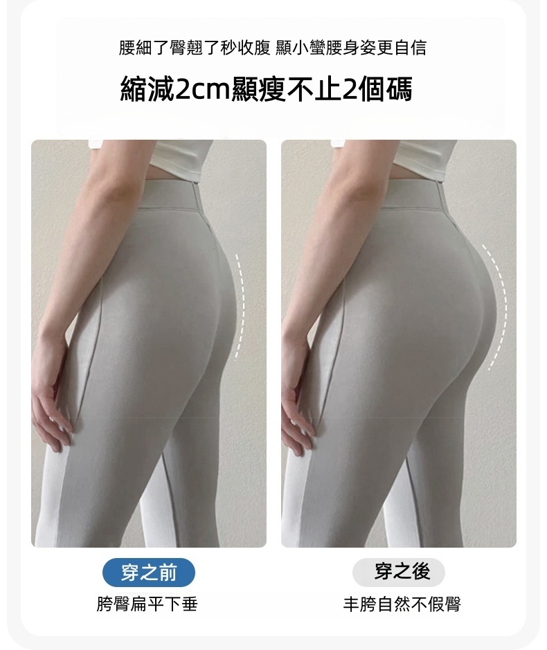 •整件力學結構技術,腰腹臀腿分區分壓,臀部三條提臀拼接線,收腹翹臀,創造蜜桃臀與小蠻腰