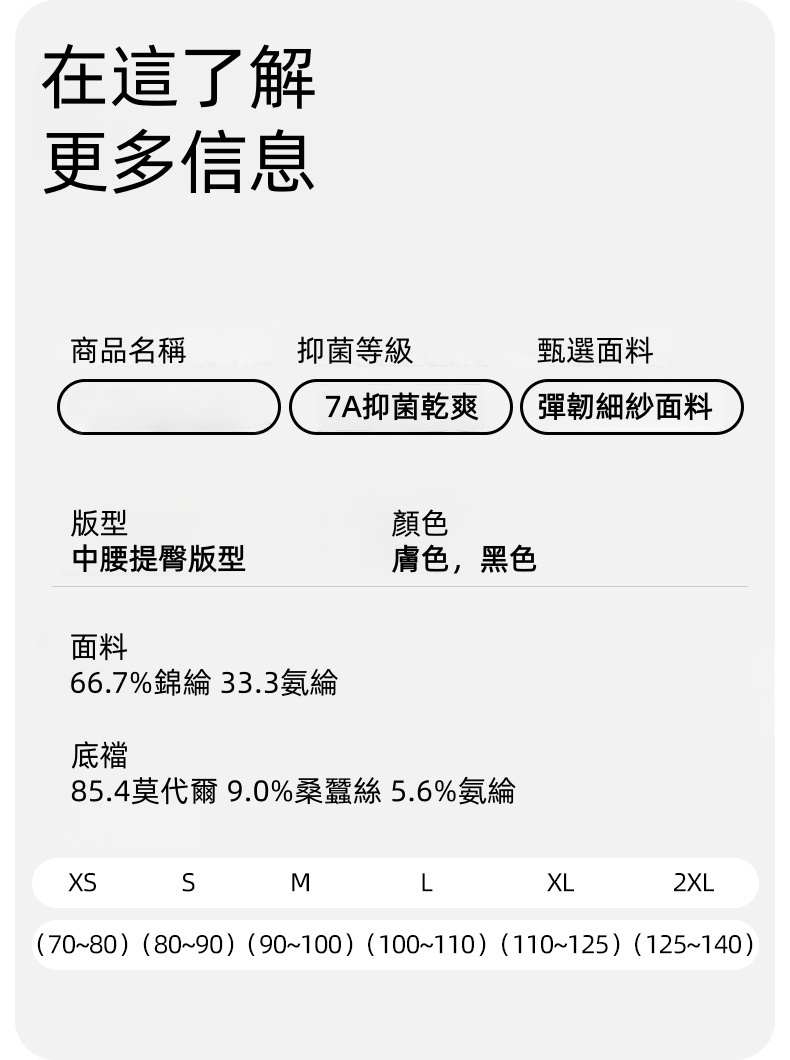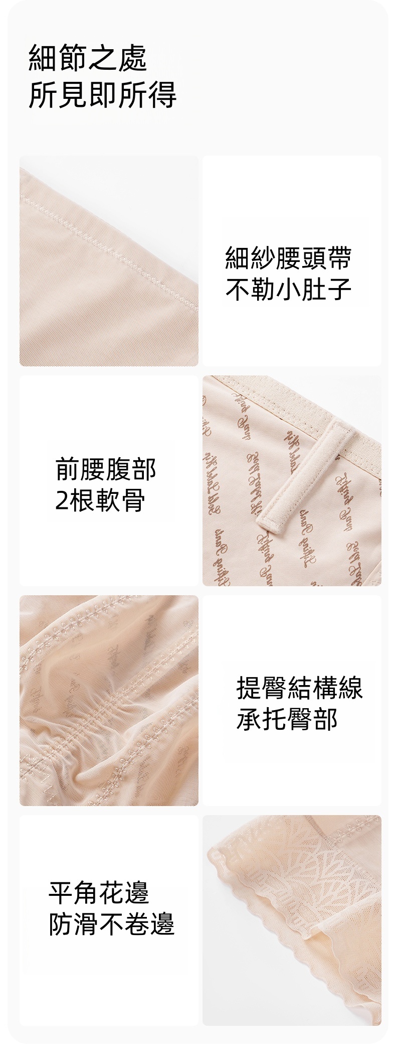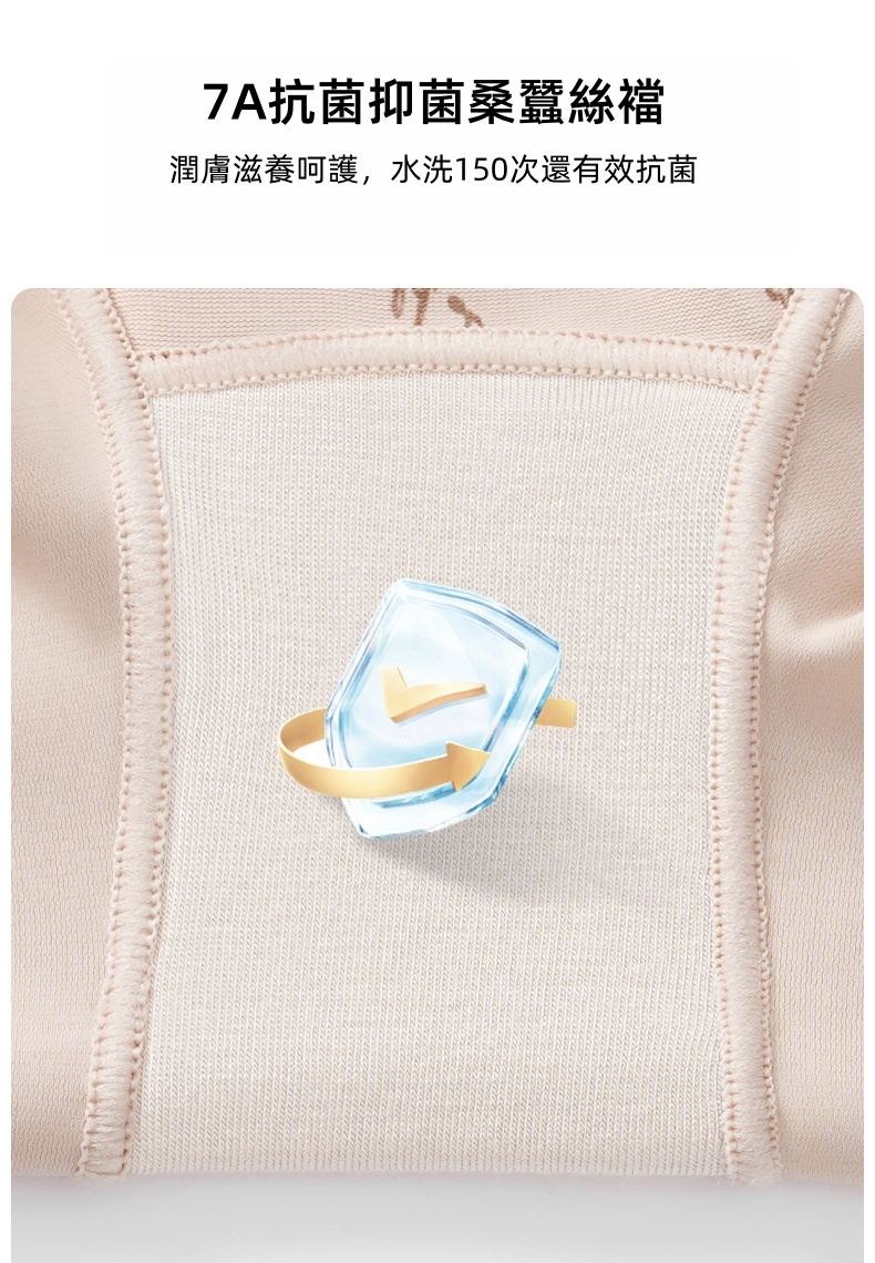 •褲底裡層使用桑蠶絲纖維布料,除臭抑菌,潤膚滋養呵護肌膚