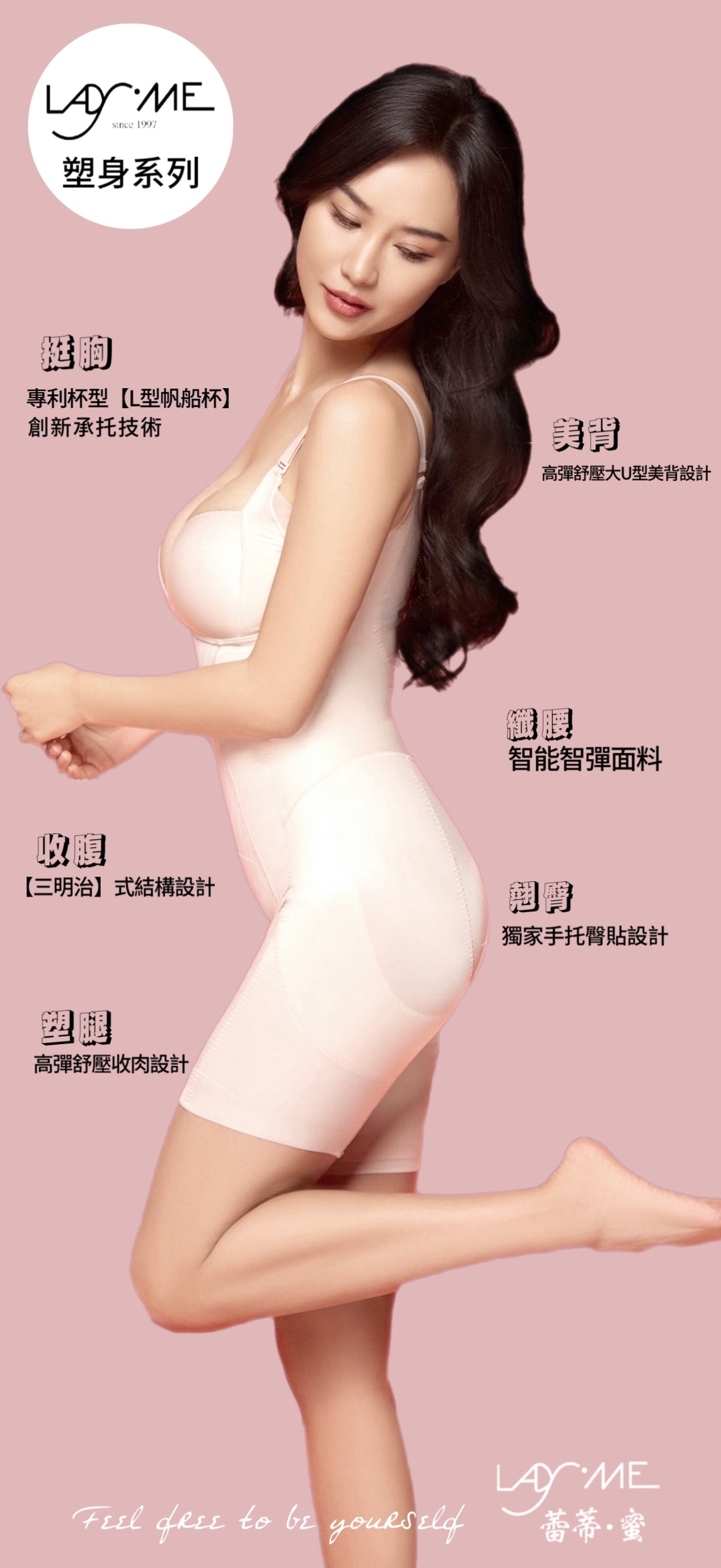 ◎ 胸型聚攏托胸, 腰線纖腰塑形,平腹緊緻,緊臀型升臀線,纖細大腿圍