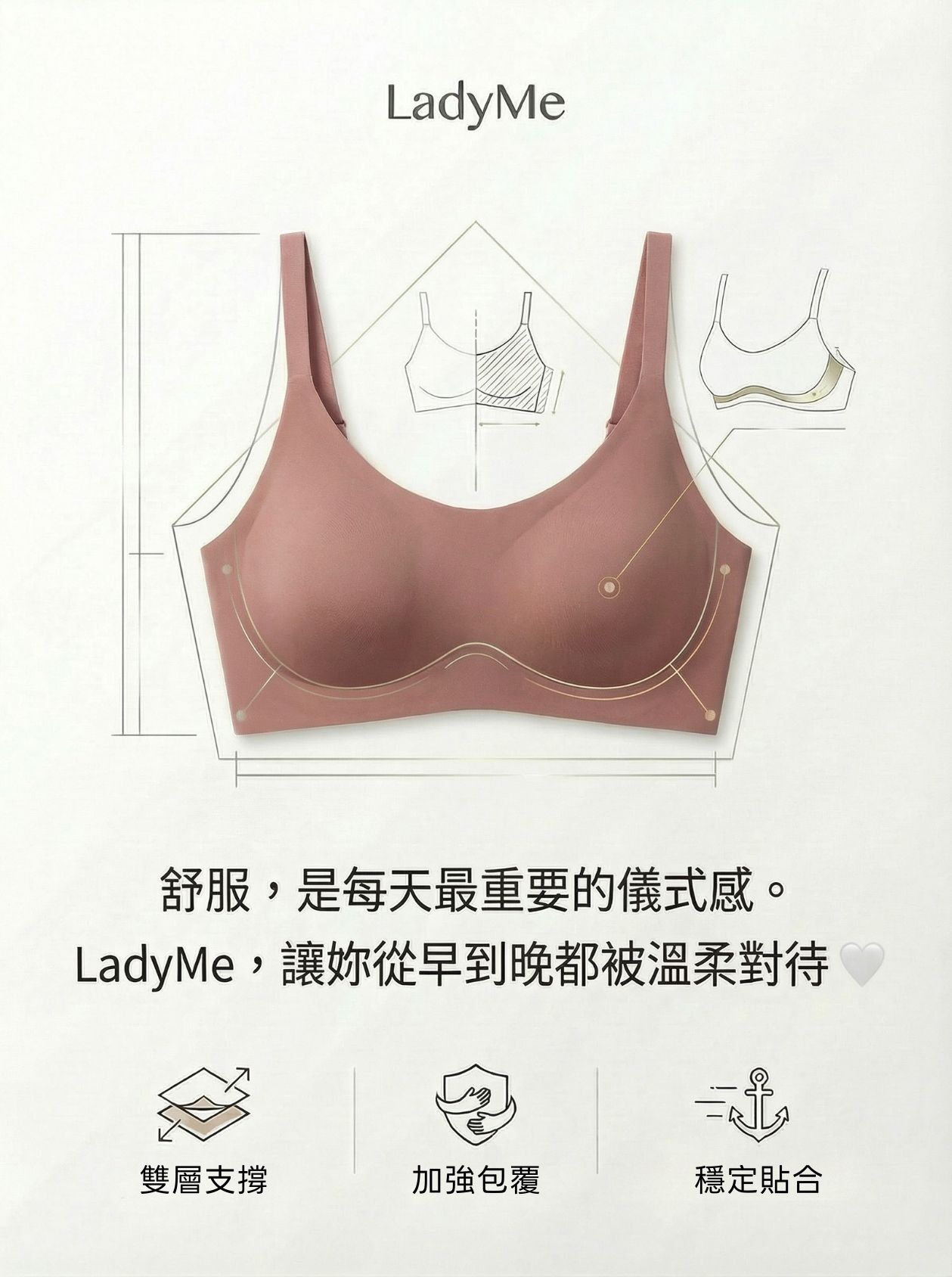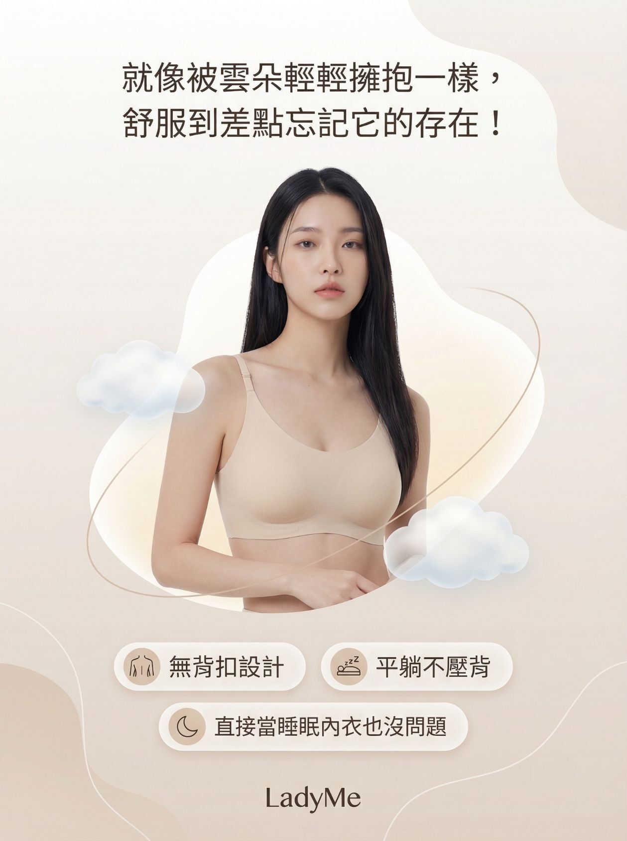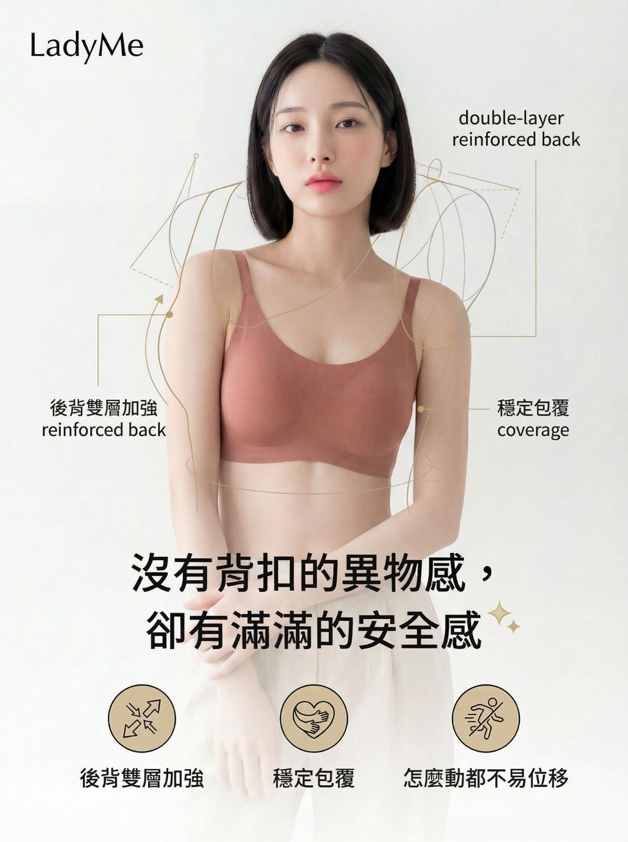 • 無背扣設計:平躺不壓背,直接當睡眠內衣也沒問題