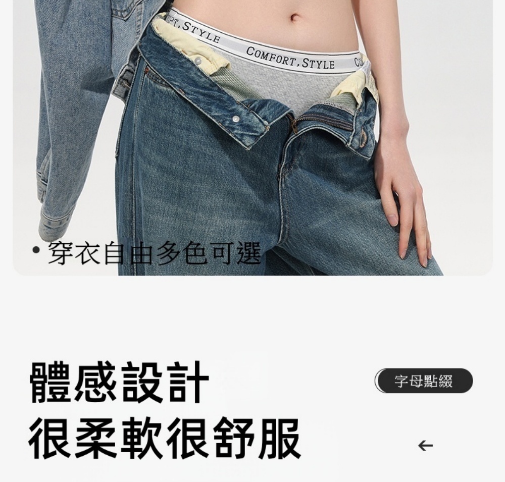 •褲腰頭字母緊帶,時尚百搭,外露不尷尬