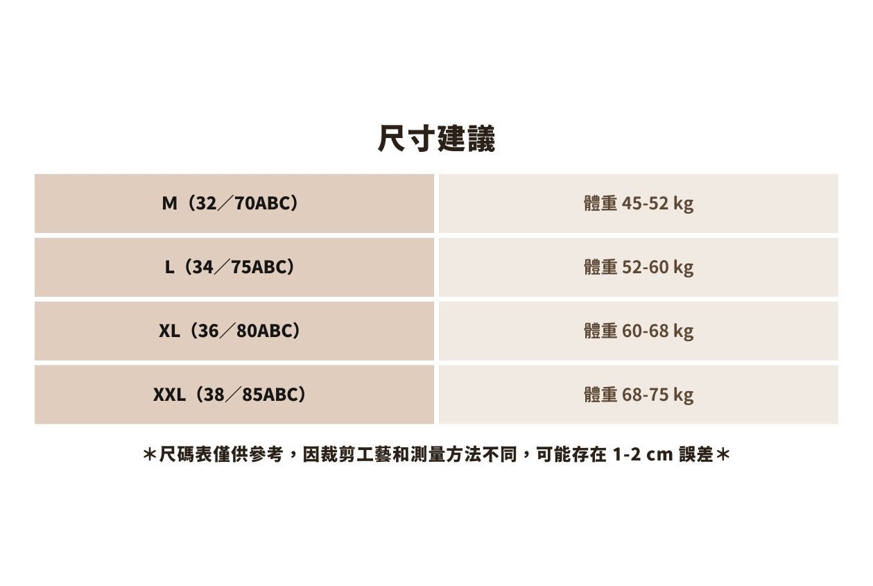 • A-C 罩杯通杯:字母肩帶設計,露出肩膀也時尚