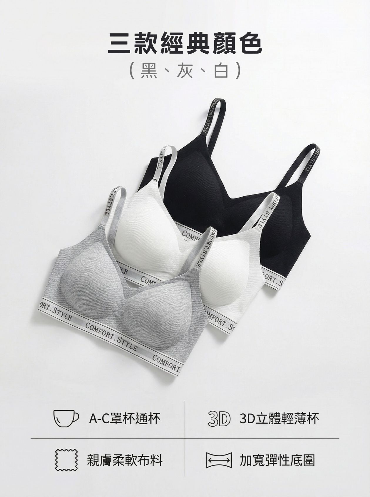 • 3D 立體輕薄杯:服貼不空杯,小胸也能穿得自信