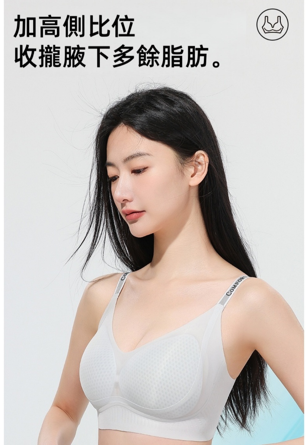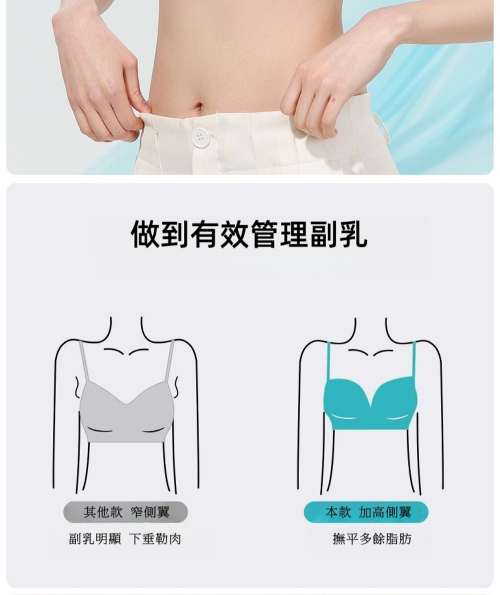 •側邊加高,收攏腋下多餘脂肪