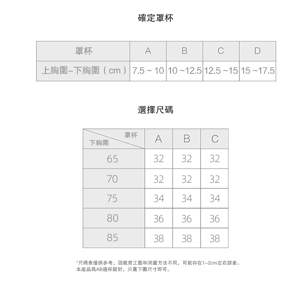 •AB通杯設計hold得住,只選下圍尺寸即可