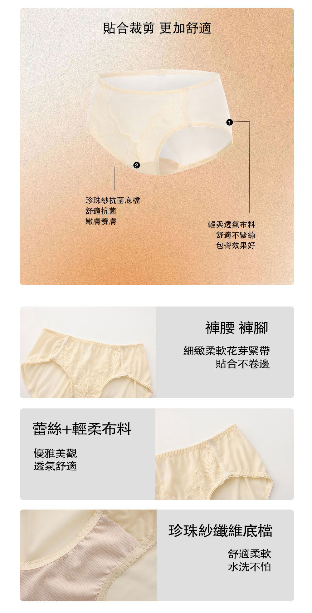 •小褲褲底使用珍珠紗抗菌布料