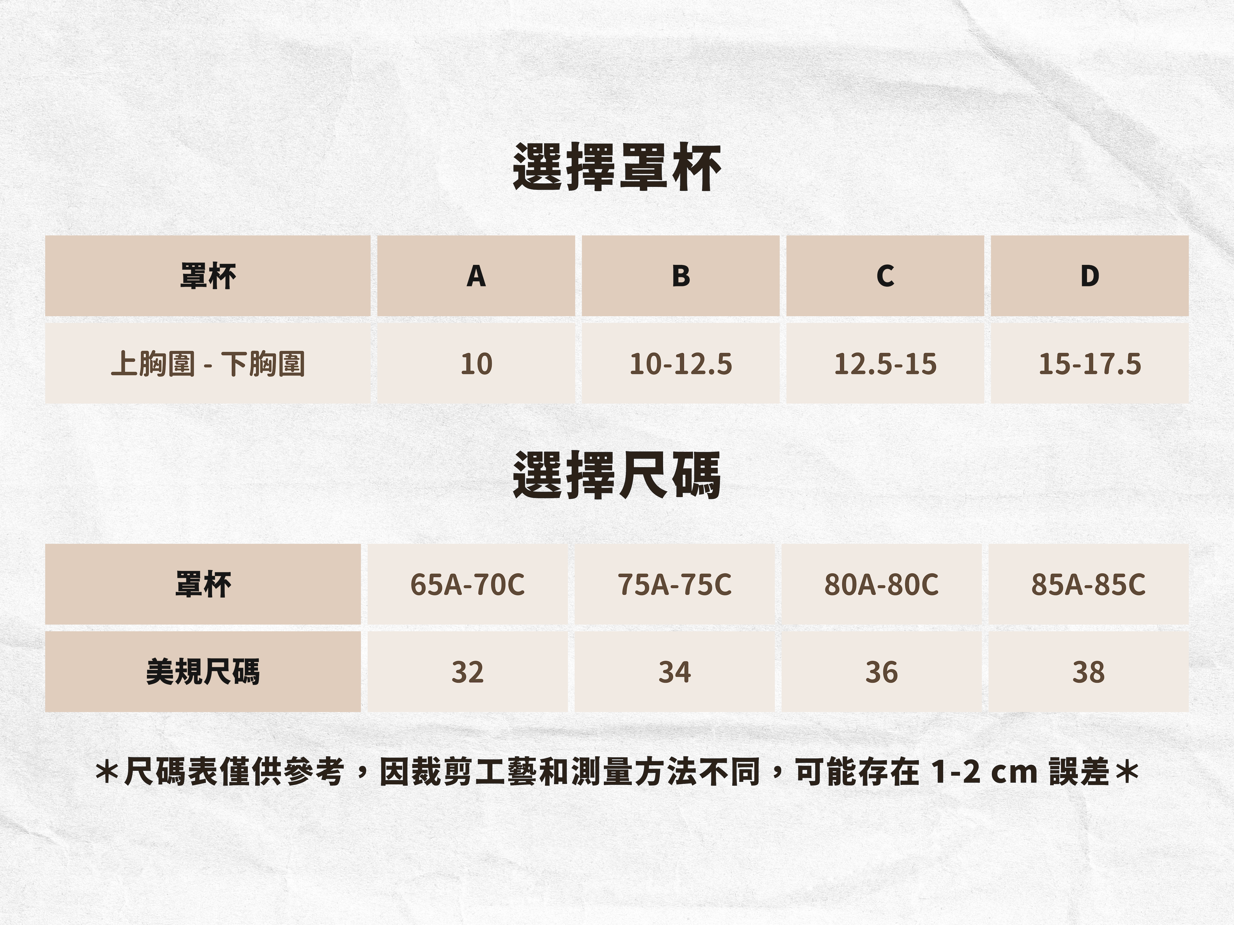 • AB 通杯設計 hold 得住,只選下圍尺寸即可