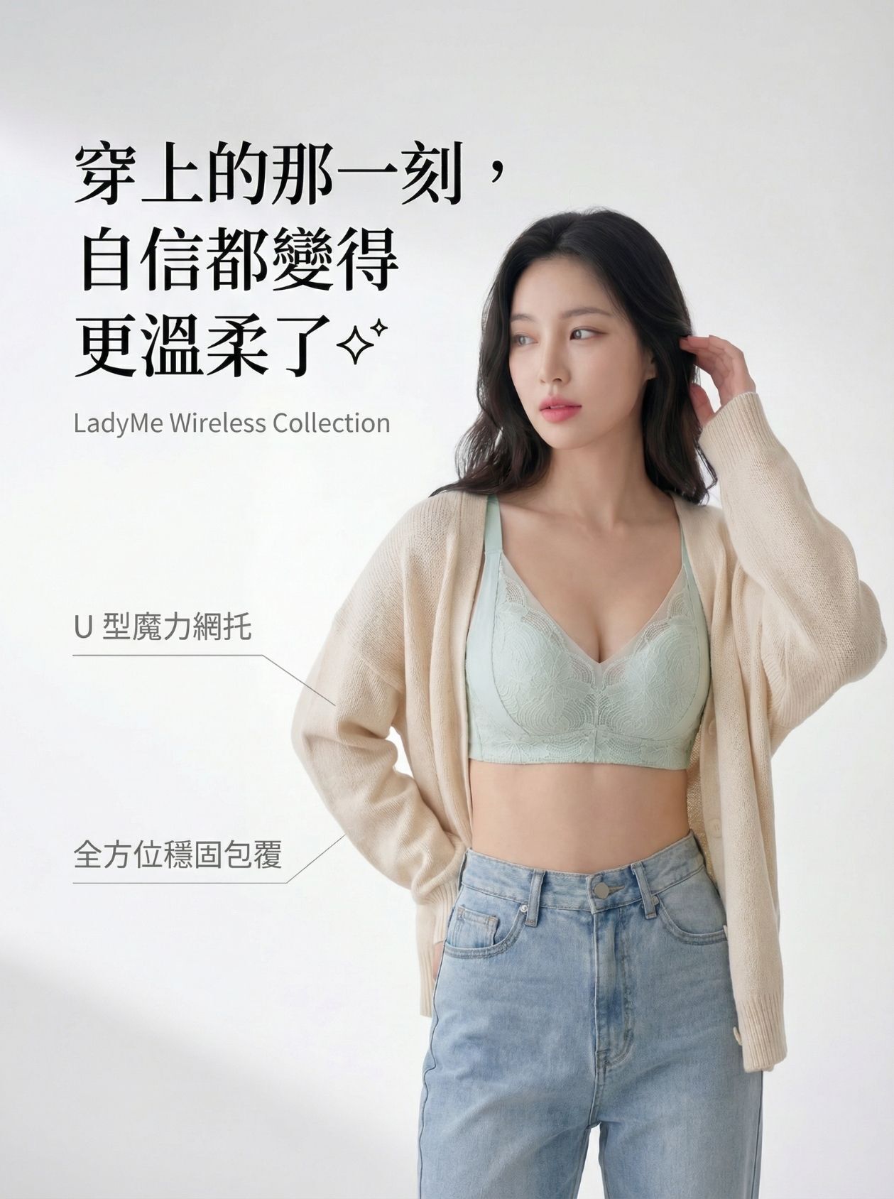 • U 型魔力網托:定型側收技術,提拉胸型,集中顯瘦