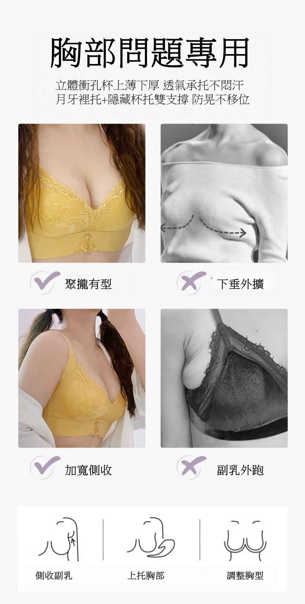 •脅邊加高 雙層夾彎設計 穩穩收住副乳