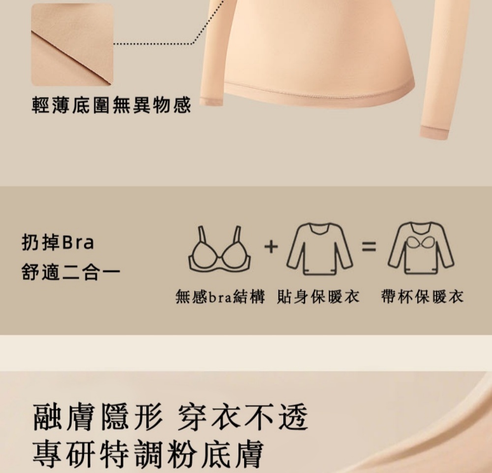 •輕薄顯瘦的熱能衣,能蓄熱鎖溫