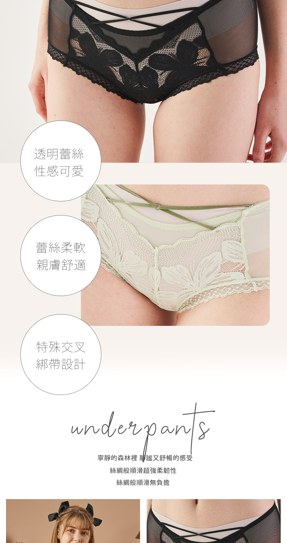 •優雅雕花+透紗、雙線交叉設計顯腰身