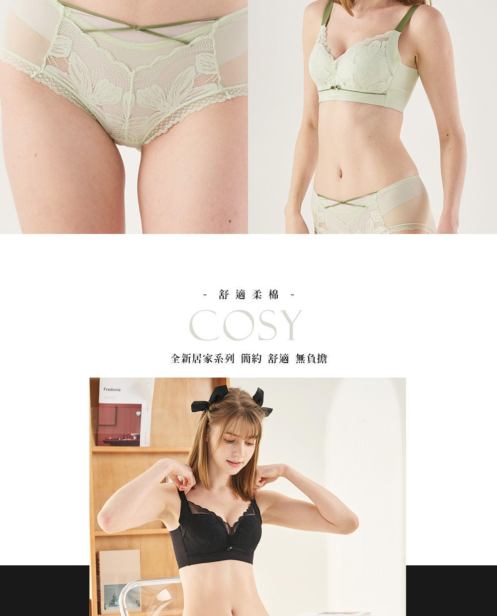 •優雅雕花+透紗、雙線交叉設計顯腰身