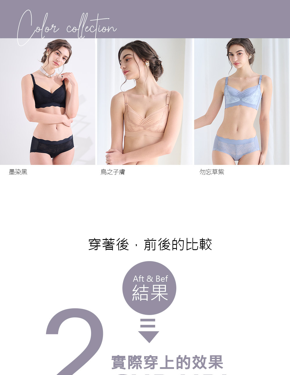 •內衣背片使用隨意裁無痕面料設計,穿後不擠肉,不尷尬
