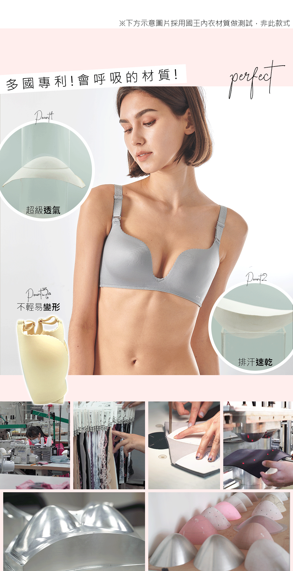 •罩杯材質使用三明治+直立棉,輕量,快乾,高透氣性