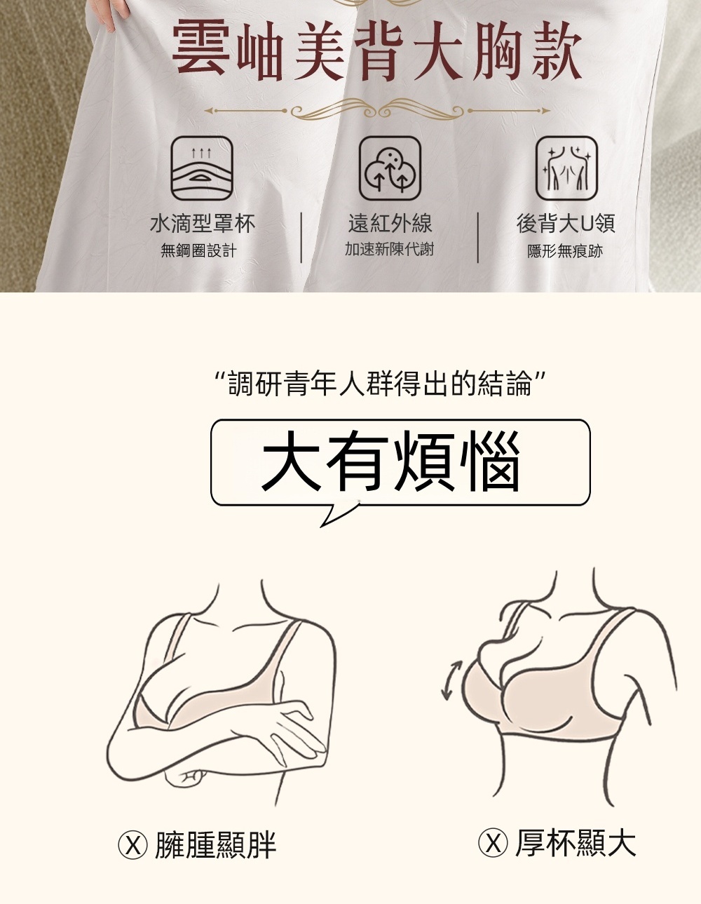 •大胸防下垂光面提拉 ,杯底延伸軟支撐